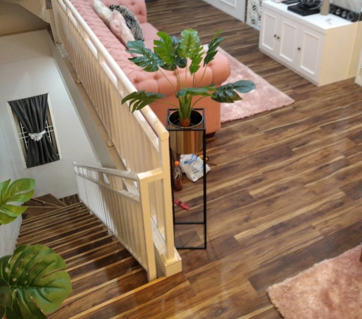 Lantai spc tebal 6 mm berbahan semi carbon bermotif serat kayu apabila di instal dapat menimbulkan atmosfir kenyamanan pada ruangan dan elegan (tahan air dan rayap)